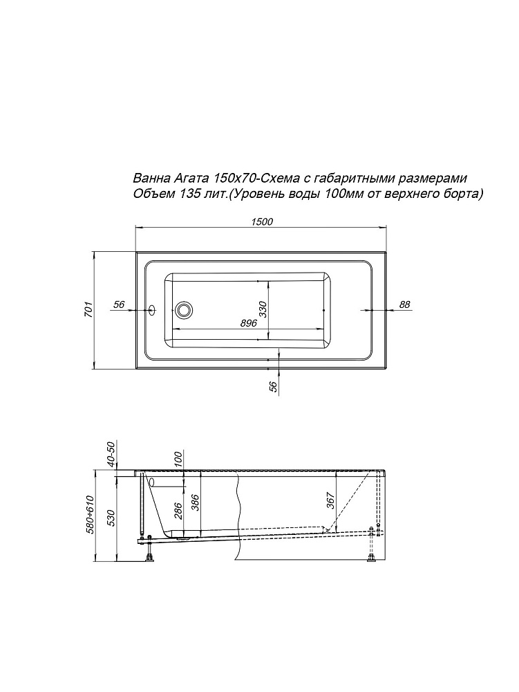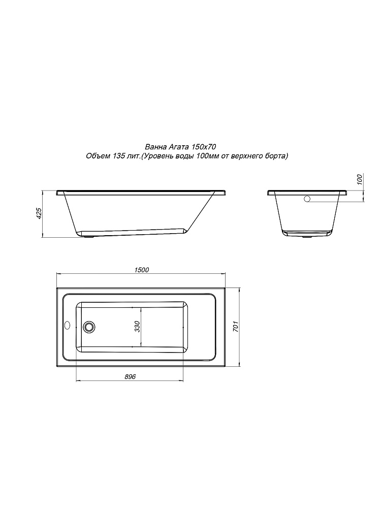 Отзывы о Акриловая ванна Aquanet Агата 352892 150x70 см, пристенная, белая, с каркасом