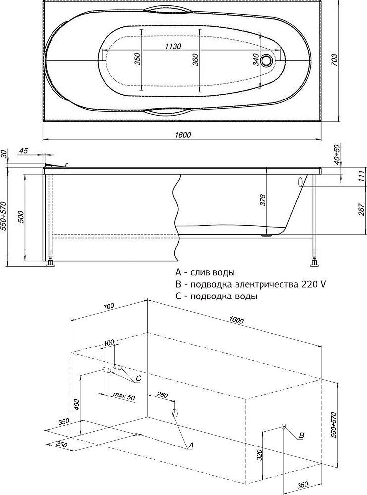 Изготовлена из литьевого акрила толщиной 0,5 см, что обуславливает износостойкость