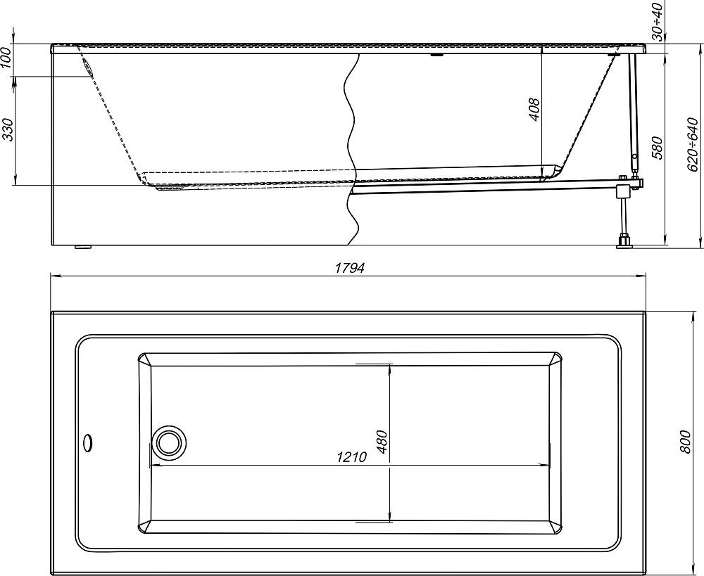 Акриловая ванна Aquanet Grace 292067 180x80 см, пристенная, белая, с каркасом