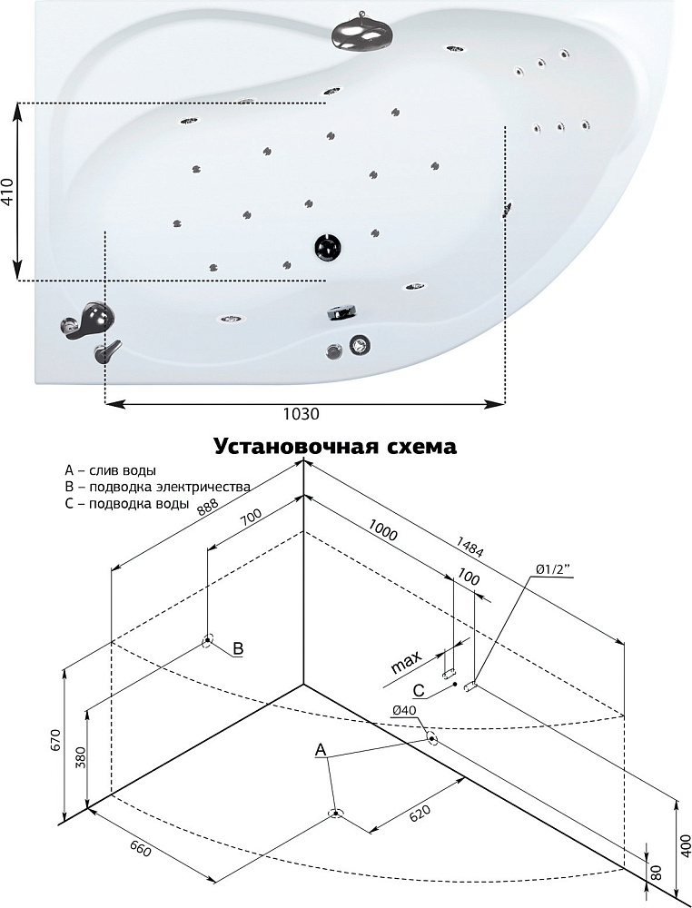 российского производителя Aquanet — элегантная и функциональная угловая модель. Прочная и