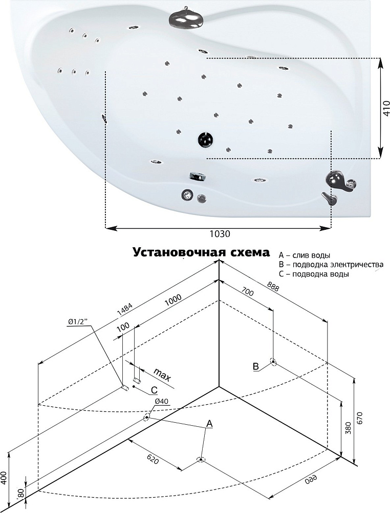 современных интерьеров. Акриловая чаша устанавливается на металлический каркас