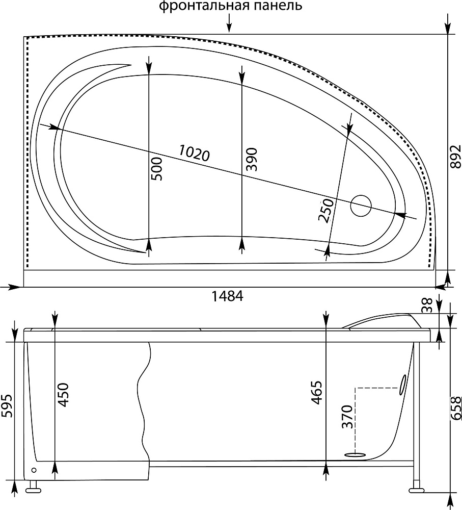 Акриловая ванна Aquanet Maldiva 00205445 R 150x90 см, угловая, правая, пристенная, белая, асимметричная, с каркасом