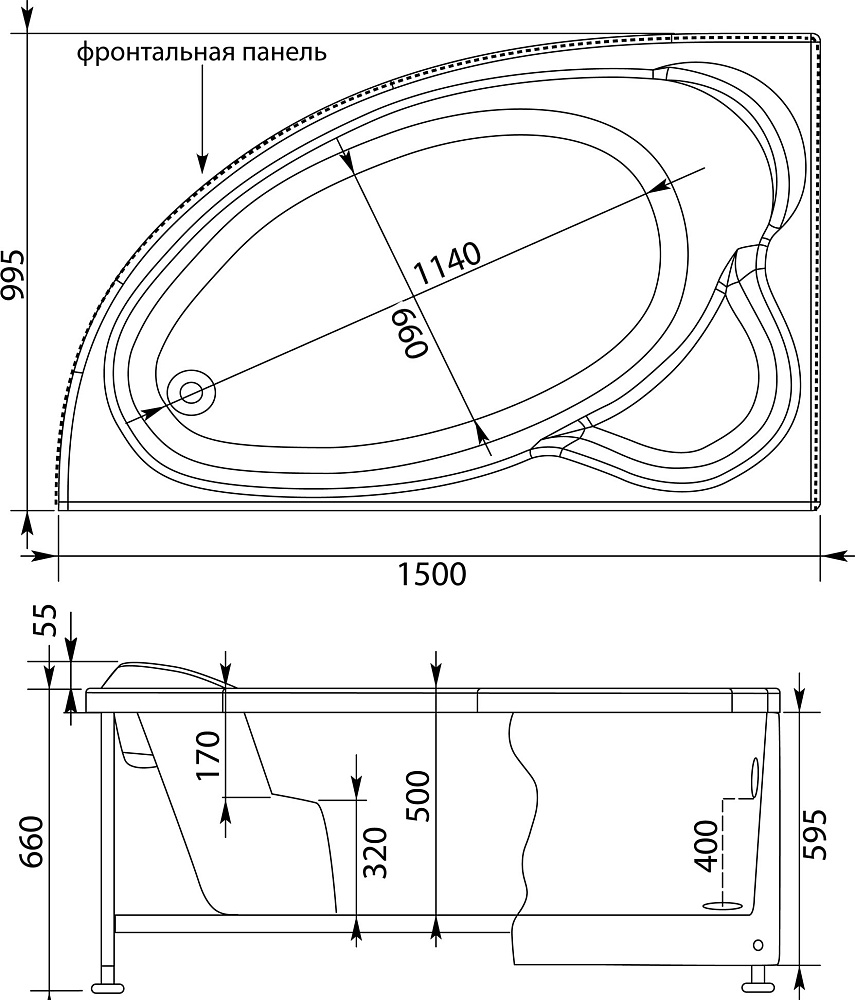 Акриловая ванна Aquanet Mayorca 00205403 L 150x100 см, угловая, левая, пристенная, белая, асимметричная, с каркасом, с сиденьем
