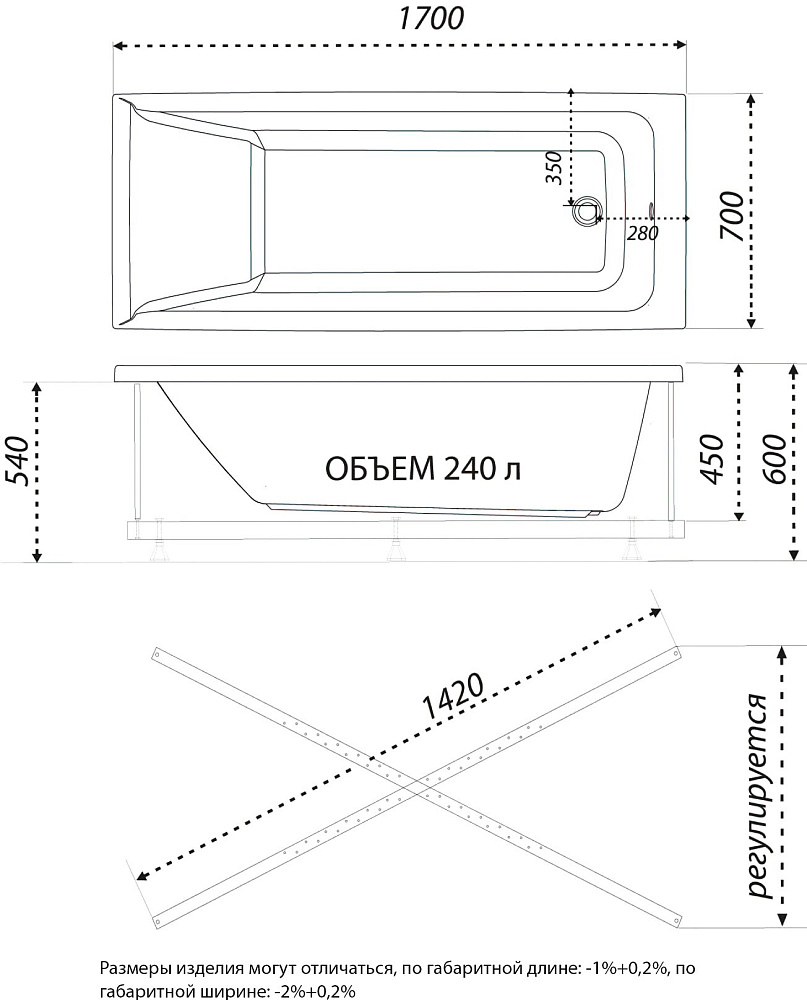 Акриловая ванна DIWO Переславль без опоры 170x70 см, пристенная, белая