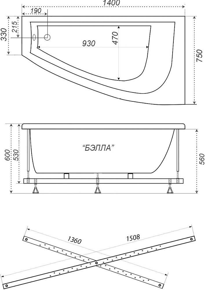 Акриловая ванна Triton Бэлла Н0000020161 L 140x75 см, угловая, левая, пристенная, белая, асимметричная, с каркасом