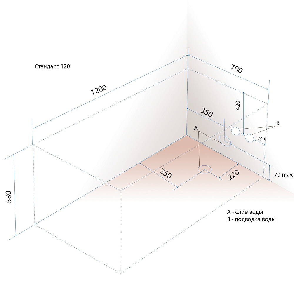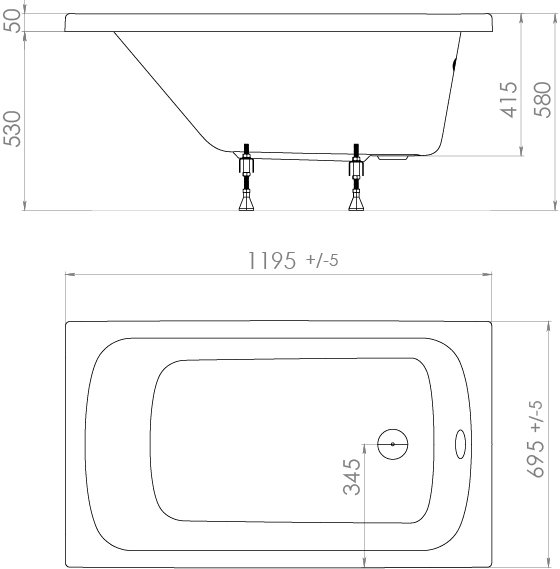 Акриловая ванна Triton Стандарт 120x70 см, пристенная, белая, на ножках