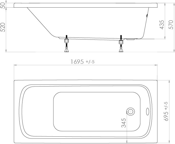 предотвращая падение. Установка ванны осуществляется на каркас с