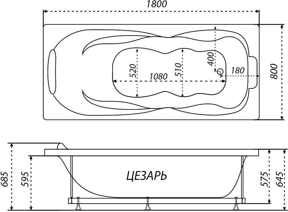 Акриловая ванна Triton Цезарь Экстра 180x80 см, пристенная, белая, с каркасом