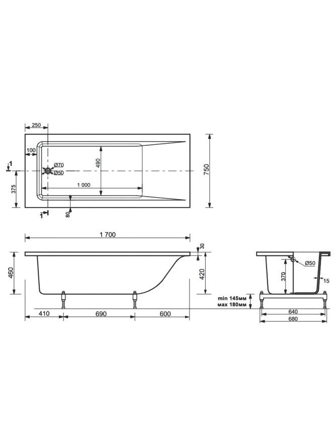 Отзывы о AQ-00332882 Ванна прямоугольная 1700х750 Aquanet (332882)