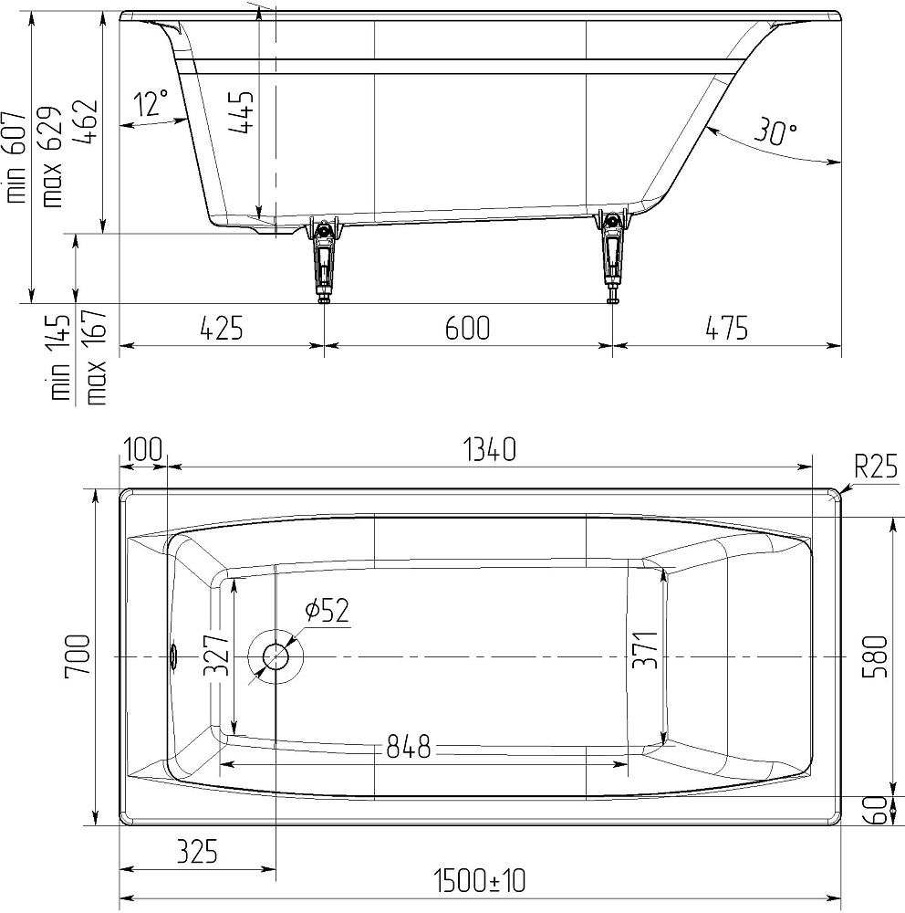 Прямоугольная конструкция выполнена по ГОСТу 18297–96 «Приборы санитарно-технические чугунные эмалированные». В комплект уже включены ножки — это значит, что модель полностью готова к установке. Опоры можно регулировать по высоте до 5 см, чтобы подстроить уровень бортиков под свой рост.