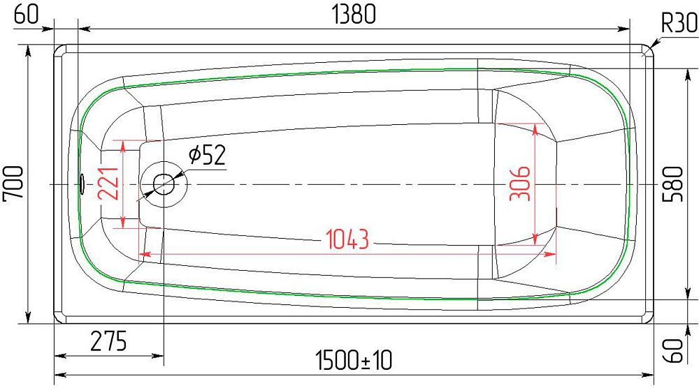 Прямоугольная конструкция соответствует ГОСТу 18297–96 «Приборы санитарно-технические чугунные эмалированные». Материал не имеет нефтепродуктов в составе и при нагреве не выделяет токсических веществ. По истечении срока службы изделие подлежит повторной переработке.