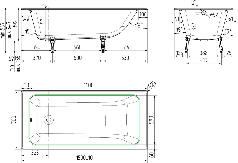 Универсал — компактная и удобная чугунная ванна. Комфорт в использовании достигается за счет уникальных свойств материала. Чугун обладает низкой теплопроводностью, не дающей воде быстро остывать, а усиленное звукопоглощение обеспечивает тишину во время наполнения ванны. Прямоугольная модель готова к установке — в комплекте есть ножки, которые можно отрегулировать до 5 см по высоте. Вы можете самостоятельно выставить оптимальный уровень бортика для входа. Покрытие из стекловидной эмали прочное и износостойкое. Царапины и сколы при случайном падении банных принадлежностей исключены. Эмаль не окрашивается и не впитывает загрязнения. Для очистки не нужна специальная бытовая химия — сохранить блеск и белизну изделия поможет простейший регулярный уход. Чугунные ванны Универсал соответствуют ГОСТу 18297–96 «Приборы санитарно-технические чугунные эмалированные». Они экологически безопасны — не токсичны, не содержат нефтепродуктов в составе и поддерживают вторичную переработку.