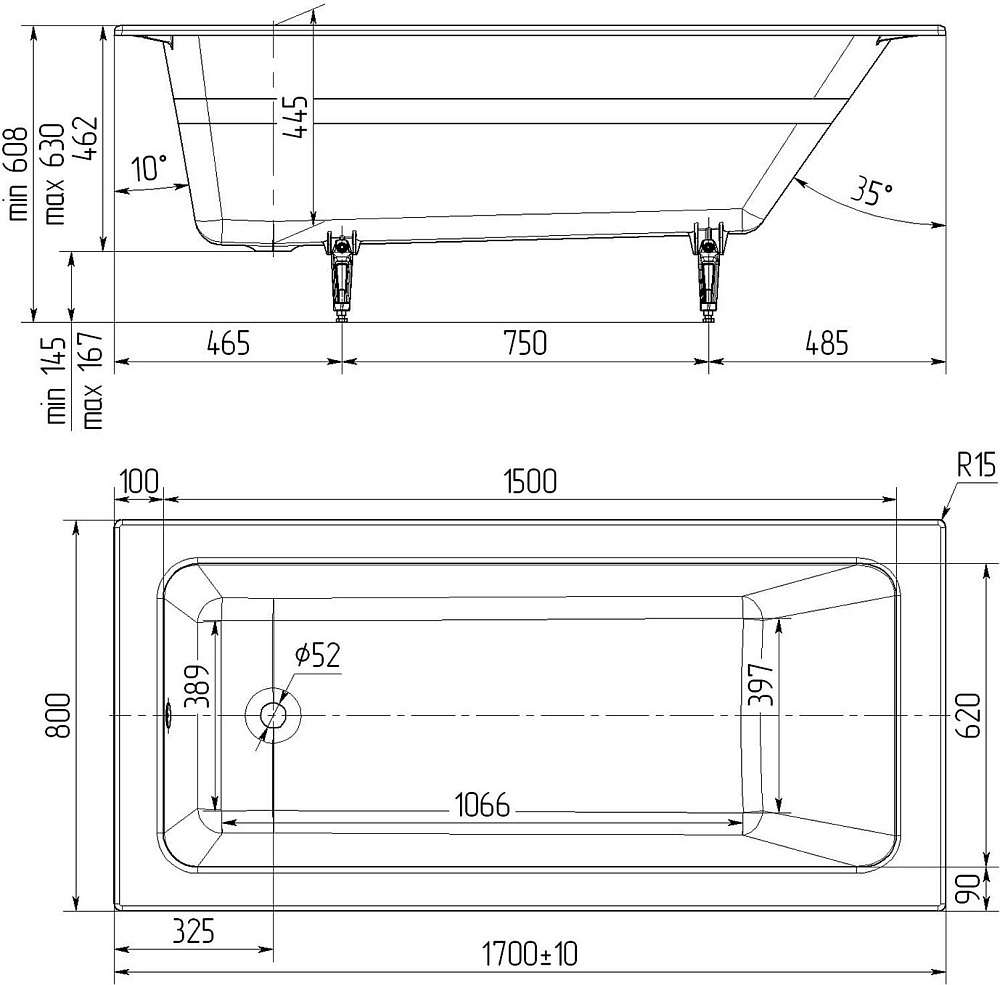Прямоугольная чугунная ванна Универсал "Оптима Ультра 170x80» подкупает увеличенной шириной и большим объемом. При наполнении водой чаша не шумит, а во время купания долго сохраняет тепло. Это объясняется двумя неоспоримыми преимуществами чугуна — усиленной звукоизоляцией и низкой проводимостью тепла.