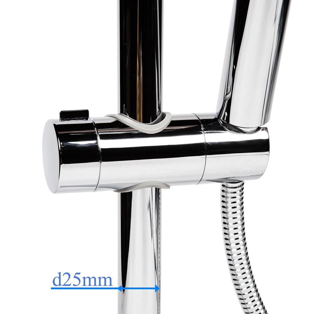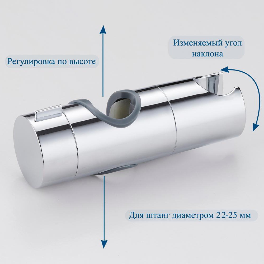 Держатель душевой лейки на штангу BOND BSH00 предназначен для установки на штангу душевой стойки, душевой системы, душевого гарнитура, душевого комплекта толщиной 22-25 мм. Держатель для штанги легко устанавливается и фиксируется, его можно регулировать по высоте и углу наклона, обеспечивая комфорт в использовании.