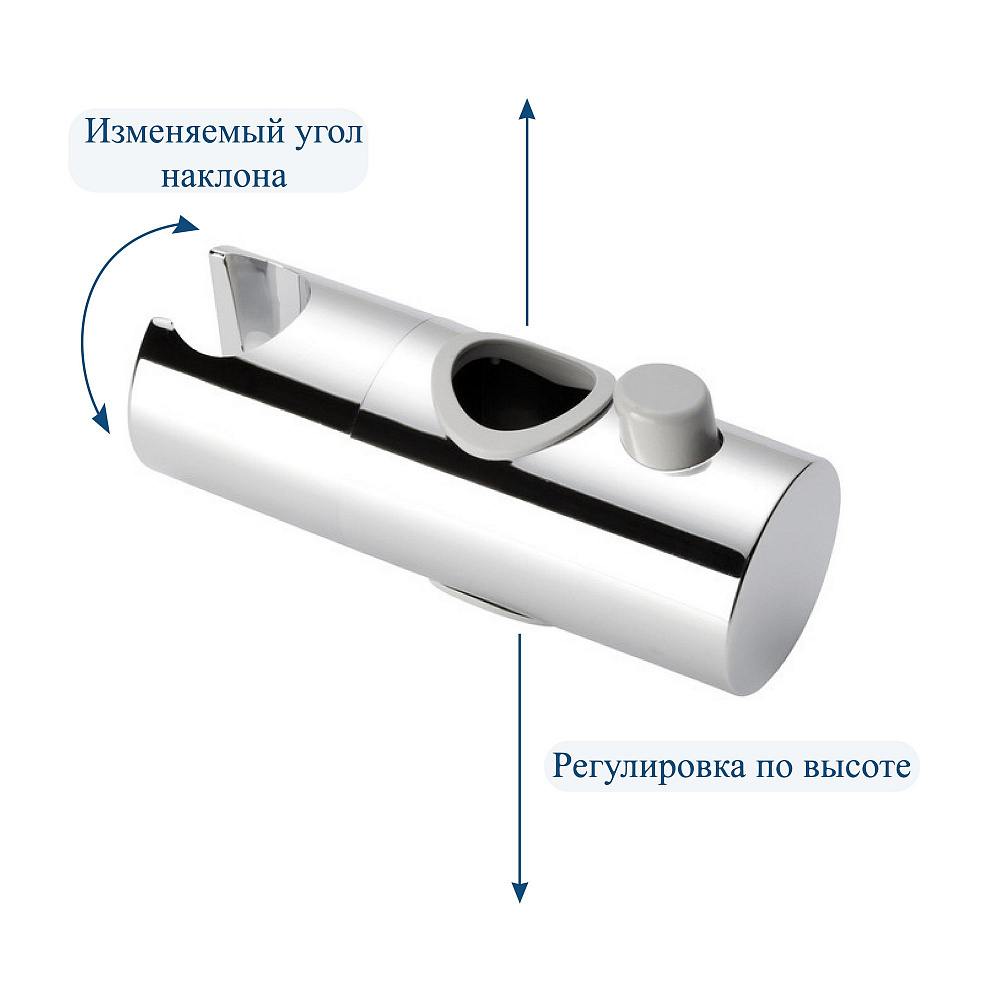 Держатель душевой лейки на штангу BOND BSH2200 предназначен для установки на штангу душевой стойки, душевой системы, душевого гарнитура, душевого комплекта толщиной 22 мм. Держатель для штанги можно регулировать по высоте, просто нажав на кнопку фиксатора. Также можно менять угол наклона лейки, обеспечивая комфорт при использовании.