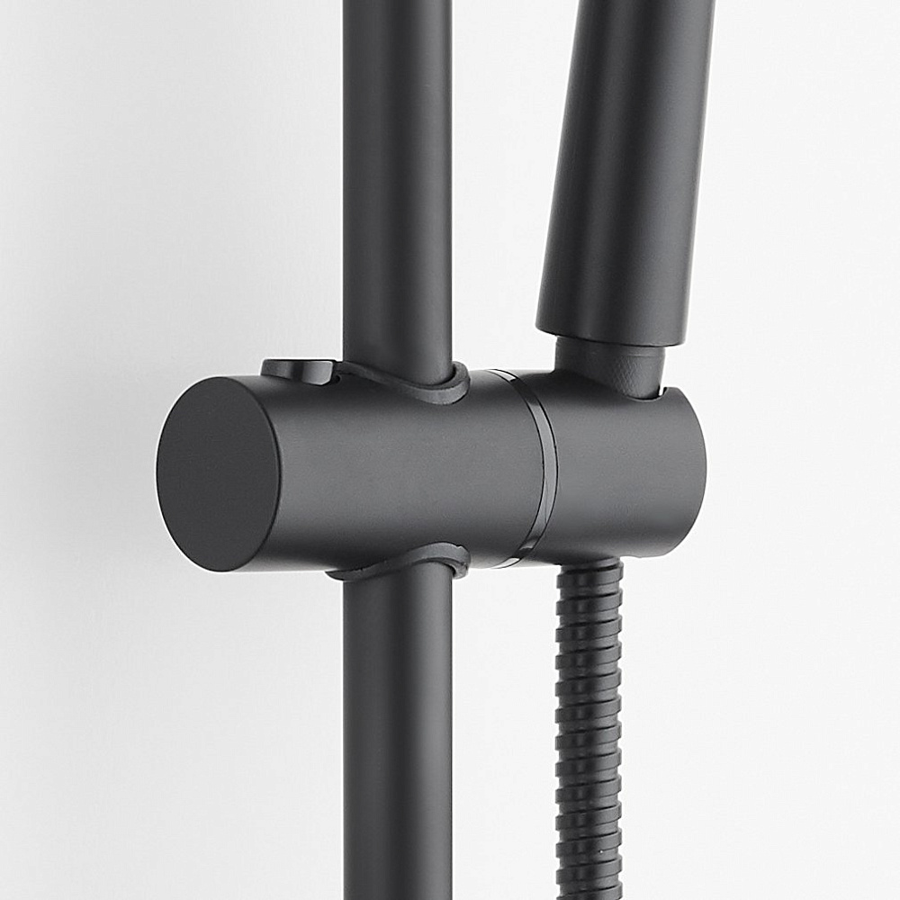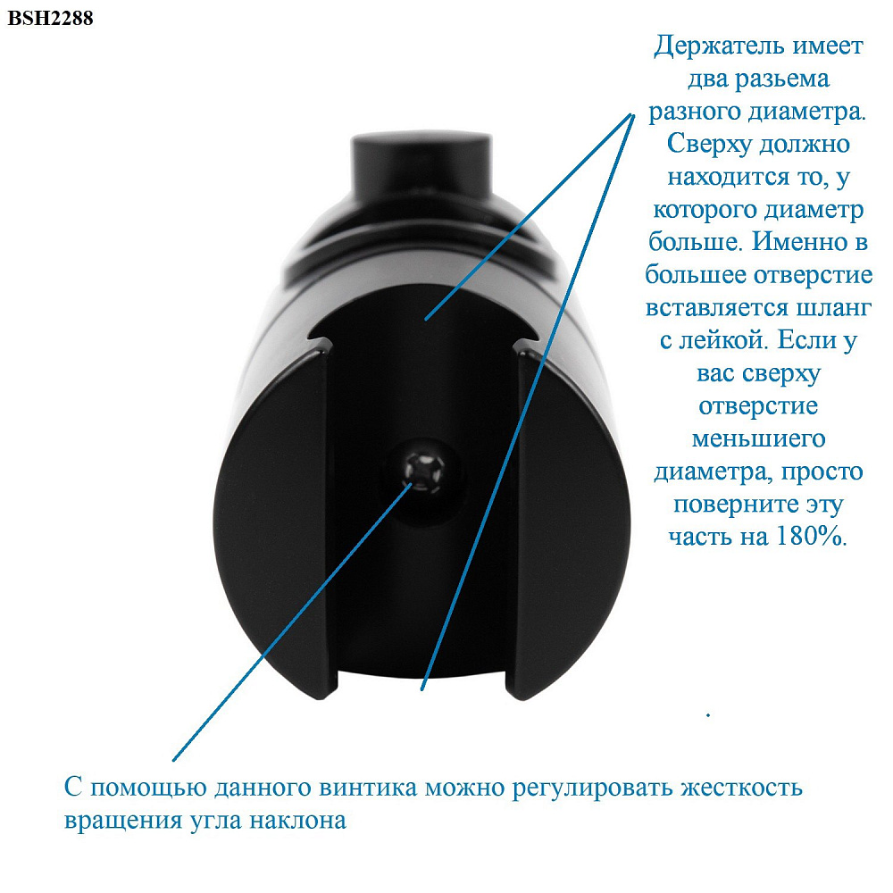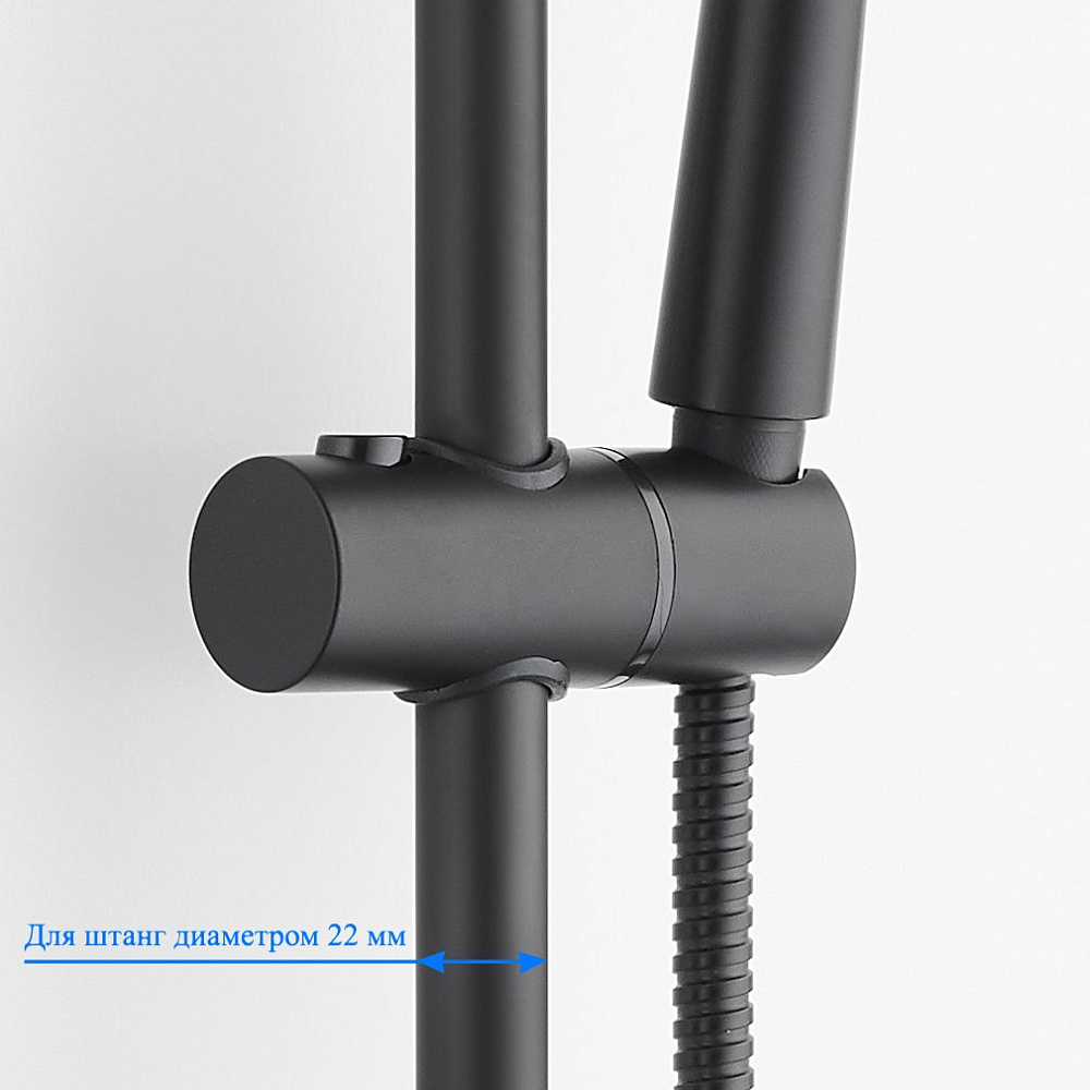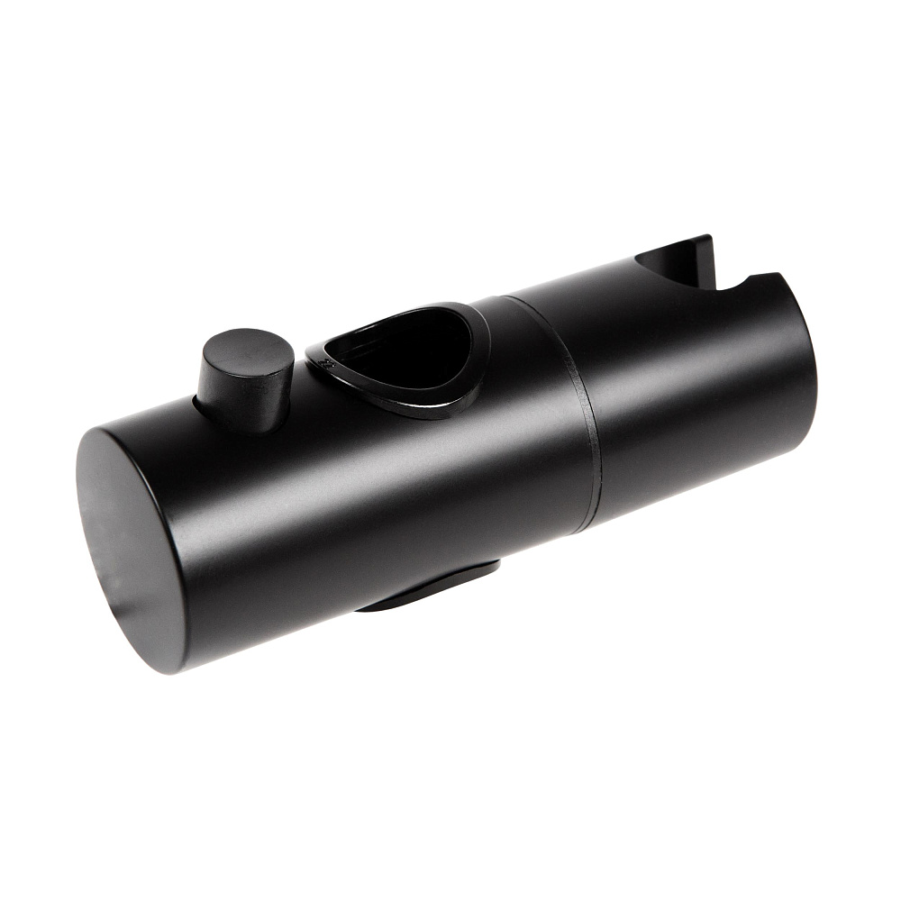 Держатель душевой лейки на штангу чёрный матовый BOND BSH2288 предназначен для установки на штангу душевой стойки, душевой системы, душевого гарнитура, душевого комплекта толщиной 22 мм. Держатель для штанги можно регулировать по высоте, просто нажав на кнопку фиксатора. Также можно менять угол наклона лейки, обеспечивая комфорт при использовании.