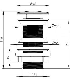 Донный клапан для раковины EWRIKA 8500385200 без перелива, сталь