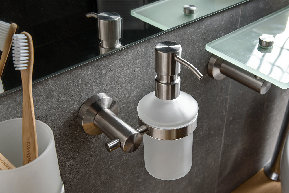 Дозатор Wess Force Wb06-02 — это стильное и функциональное решение для вашей ванной комнаты. Он сочетает в себе элегантный дизайн и высокое качество исполнения. Ёмкость дозатора выполнена из прочного полупрозрачного матового стекла, которое придаёт ему особый шарм и позволяет легко контролировать уровень жидкости. Держатель изготовлен из нержавеющей стали, что гарантирует его долговечность и устойчивость к коррозии. Покрытие держателя выполнено в технике браширования, что позволяет металлу избежать царапин и следов от капель или пальцев. Носик дозатора также выполнен из металла, что обеспечивает точность и удобство дозирования. Скрытое крепление делает установку дозатора простой и незаметной. Уход за дозатором не требует особых усилий. Его можно протирать с помощью мыльного раствора и мягкой тряпки. Однако не рекомендуется использовать абразивные и химически активные вещества, чтобы сохранить блеск и гладкость поверхности. Также следует избегать контакта с морозильником, посудомоечной машиной и микроволновой печью, чтобы избежать повреждений. Дозатор Wess Force Wb06-02 — это не только функциональный аксессуар, но и стильное дополнение к интерьеру вашей ванной комнаты. Его элегантный дизайн и высокое качество исполнения сделают вашу ванную комнату ещё более привлекательной и уютной.