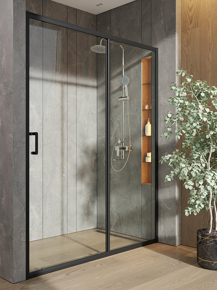 Душевая дверь в нишу Orange E02 150TB 150х190, профиль матовый черный