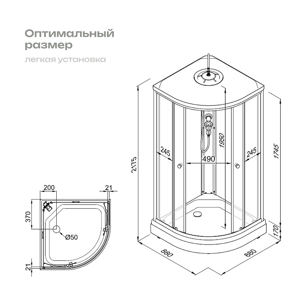 Душевая кабина DIWO Анапа 90х90 низкий поддон