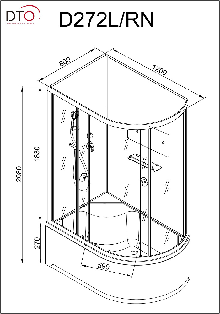 Душевая кабина DTO D D272L профиль хром, стекло матовое