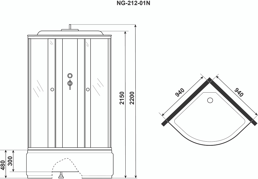 Душевая кабина Niagara NG-212-01N с высоким поддоном, с сиденьем