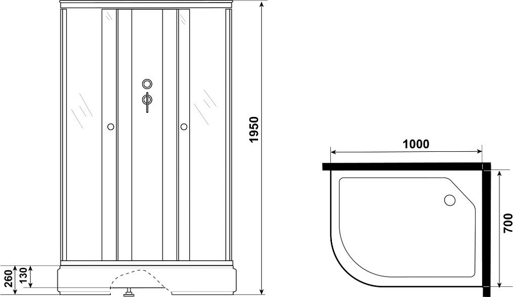 Душевая кабина Niagara Промо (Promo) P100/70/26R/MT/BK 100х70 см, без крыши, R