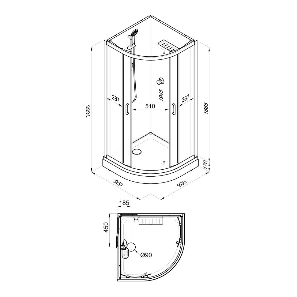 Душевая кабина Triton Прайм Сатин Щ0000077367 90х90 А без крыши