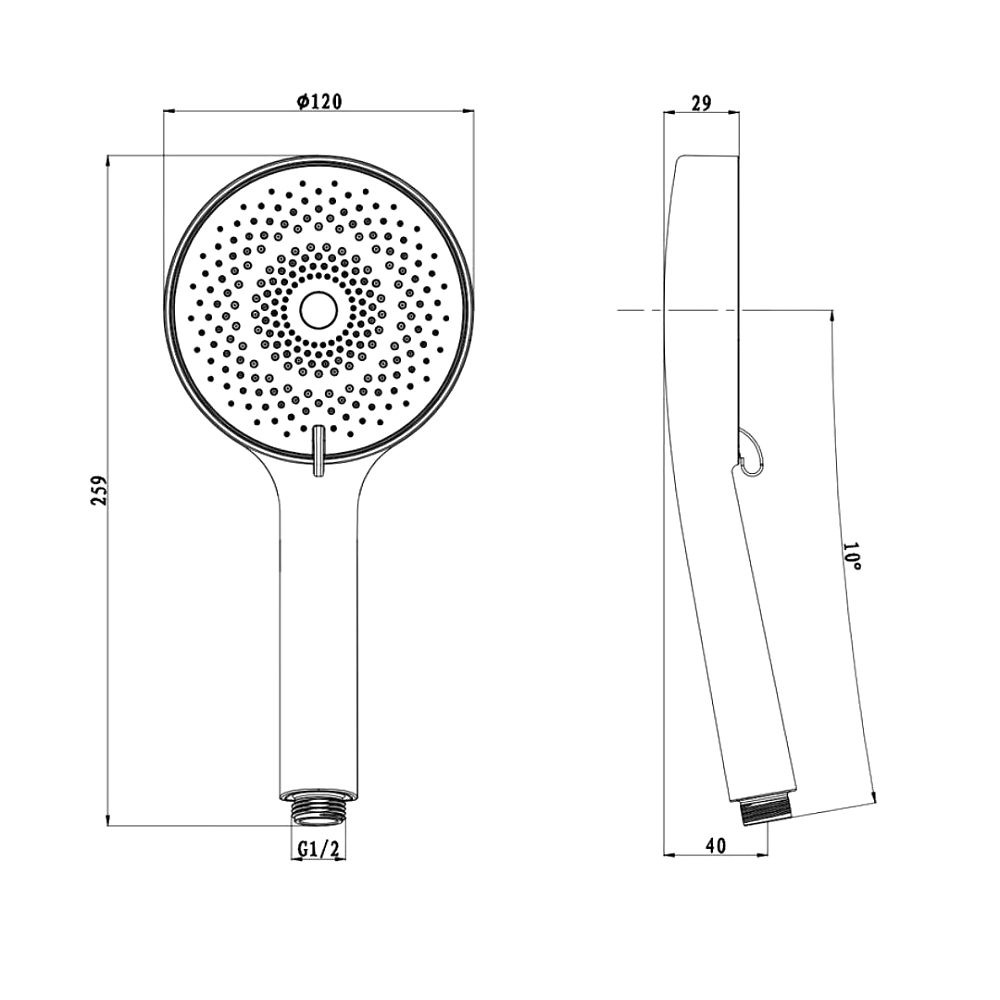 Лейка выполнена из высококачественного ABS-пластика, стойкого к повреждениям. Диаметр лейки составляет 120 мм, что обеспечивает оптимальное покрытие струями воды. Длина ручки — 140 мм — удобна для использования людьми любого роста. Стандартное резьбовое соединение ½ дюйма гарантирует лёгкость установки и совместимость с большинством душевых систем.
