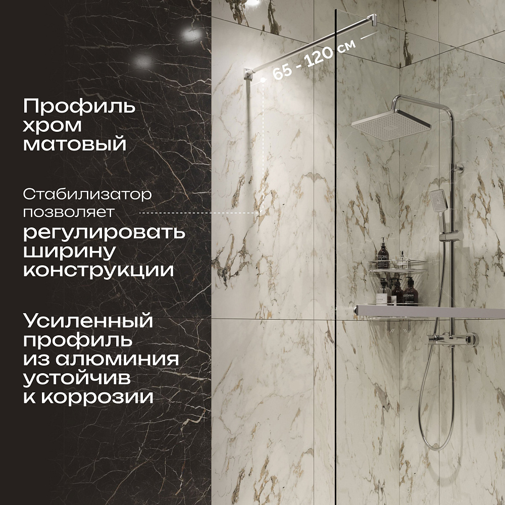 Душевая перегородка DIWO Элиста 100 см, профиль хром матовый, с полотенцедержателем