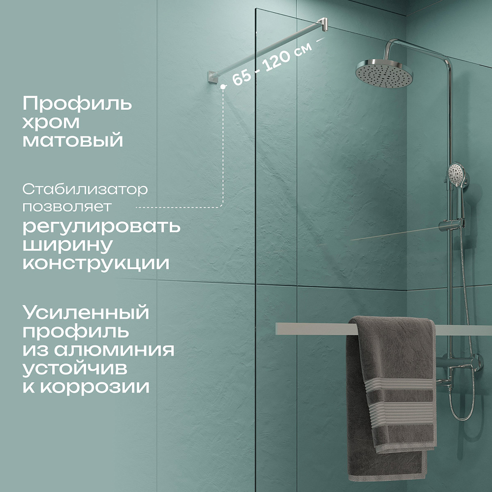 Душевая перегородка DIWO Элиста 120 см, профиль хром матовый, с полотенцедержателем
