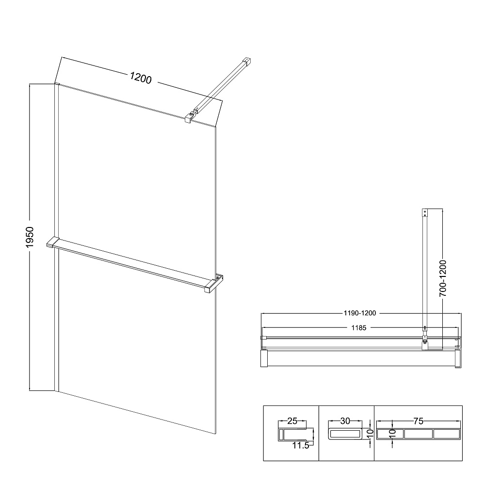 Отзывы о Душевая перегородка Niagara Nova NG-670-12ВLACK 120х195, профиль матовый черный, стекло прозрачное, с полкой