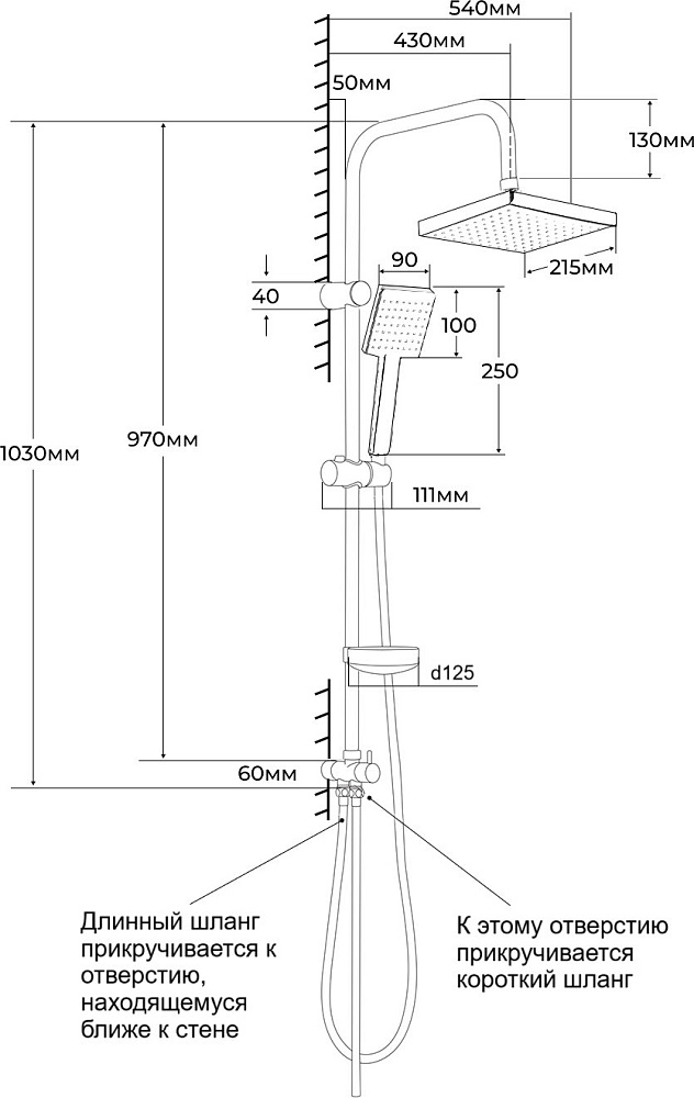 В комплект входит длинный шланг 150 см, короткий шланг 50 см для подключения к смесителю и быстросъёмная мыльница.
