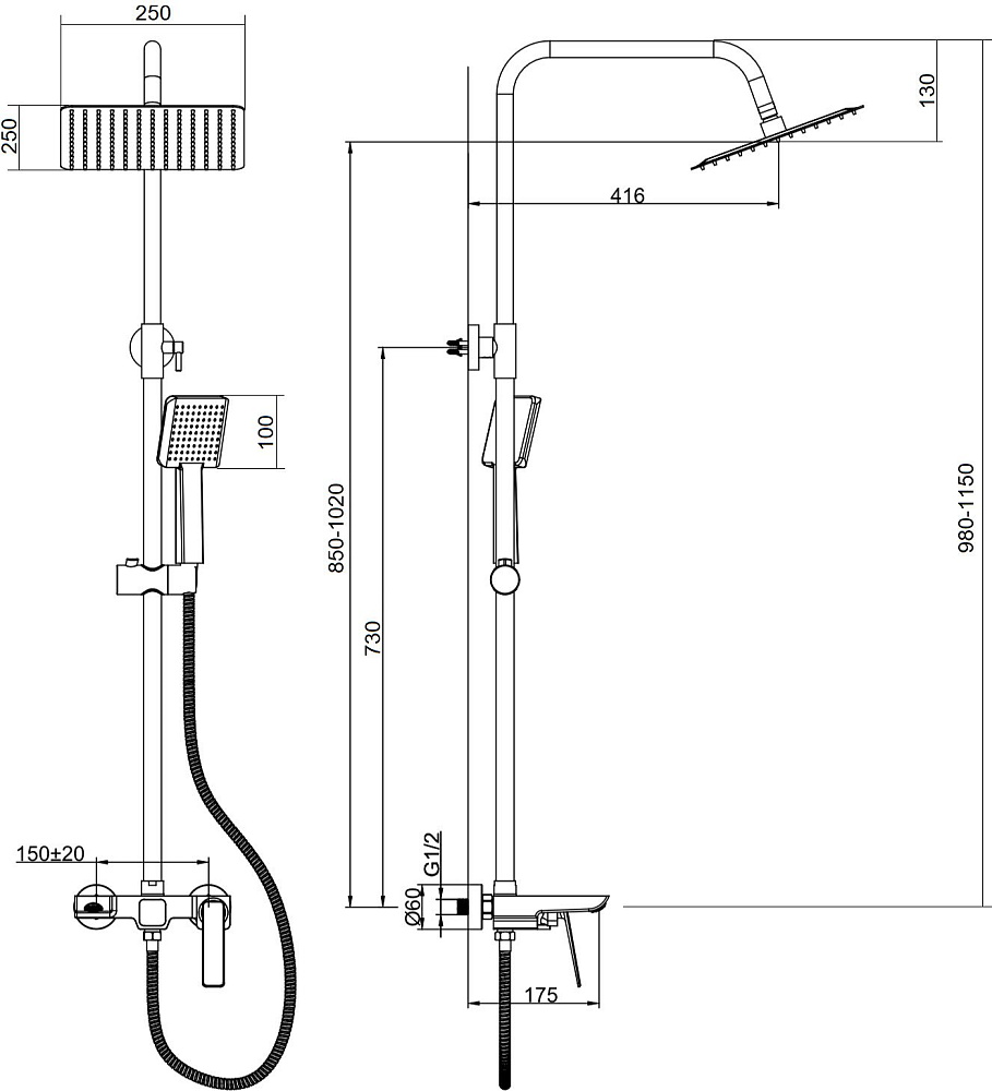 Размер верхнего душа