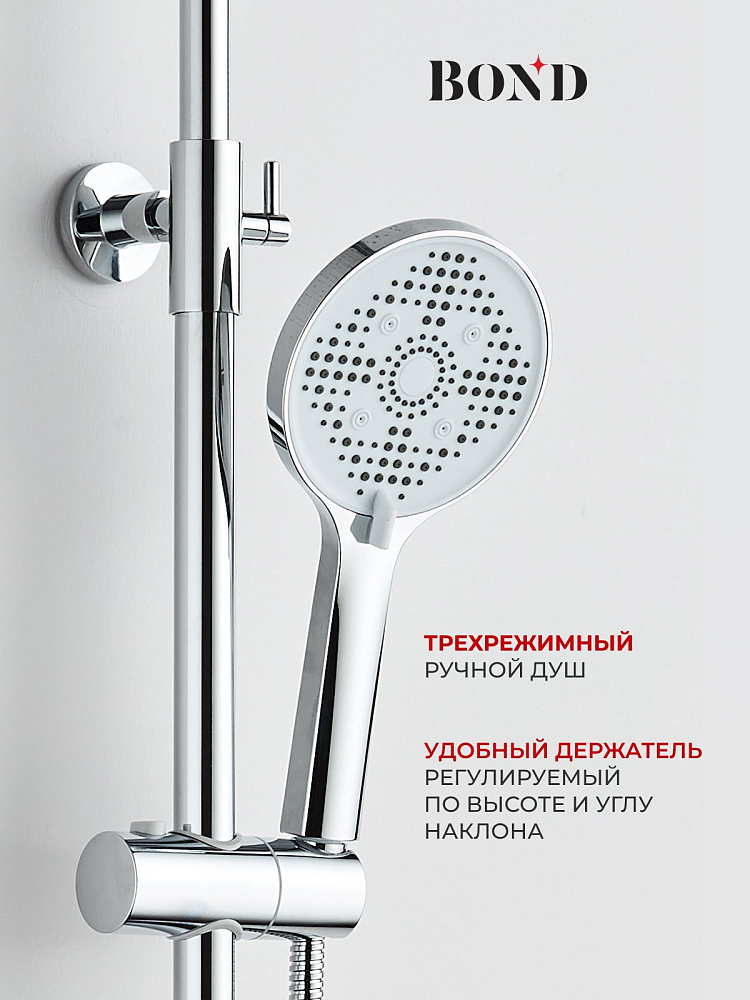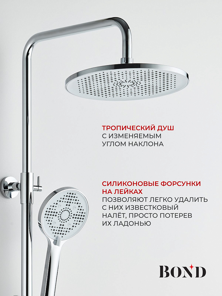 Высококачественная душевая система BOND Cube B08-9100 с тропическим душем и смесителем c изливом имеет стильный дизайн и отлично смотрится в современном интерьере душевой или ванной комнаты. Смеситель с изливом, у которого угол наклона аэратора позволяет использовать струю воды по назначению с комфортом.