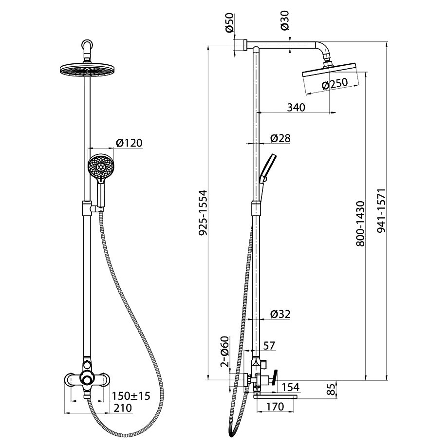 Размер верхнего душа