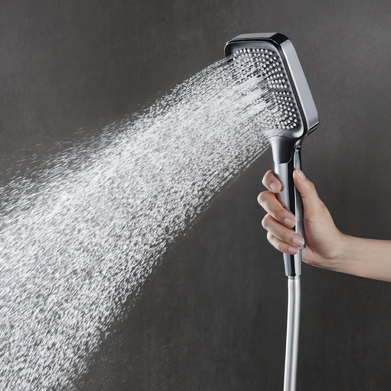 Лейка оснащена современным кнопочным переключателем, позволяющим легко одной рукой выбирать один из трех режимов: комфортный душевой режим Rain, мощный и насыщенный режим Mist или смешанный режим.