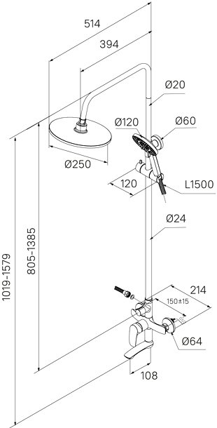 Отзывы о Душевая стойка Milardo Rora RORBL4FM06 черная