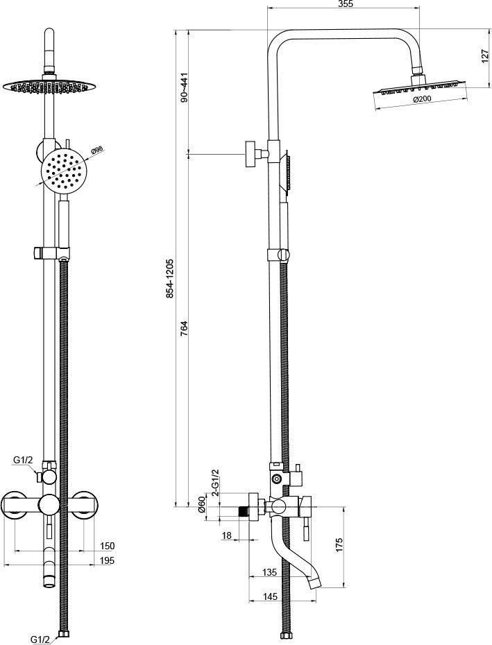 Размер верхнего душа
