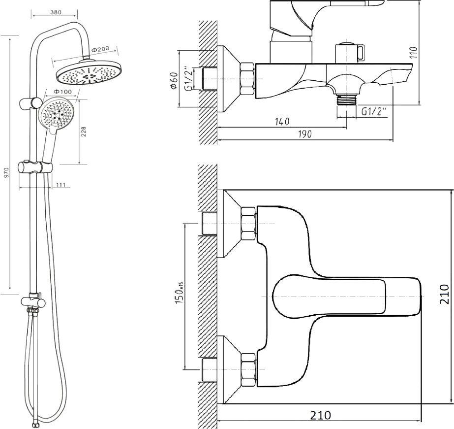 держатель для душа / душевая лейка / душевой шланг / переключатель потоков