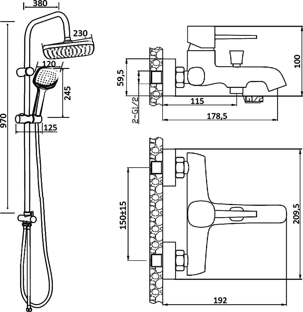 держатель для душа / душевая лейка / душевой шланг / переключатель потоков