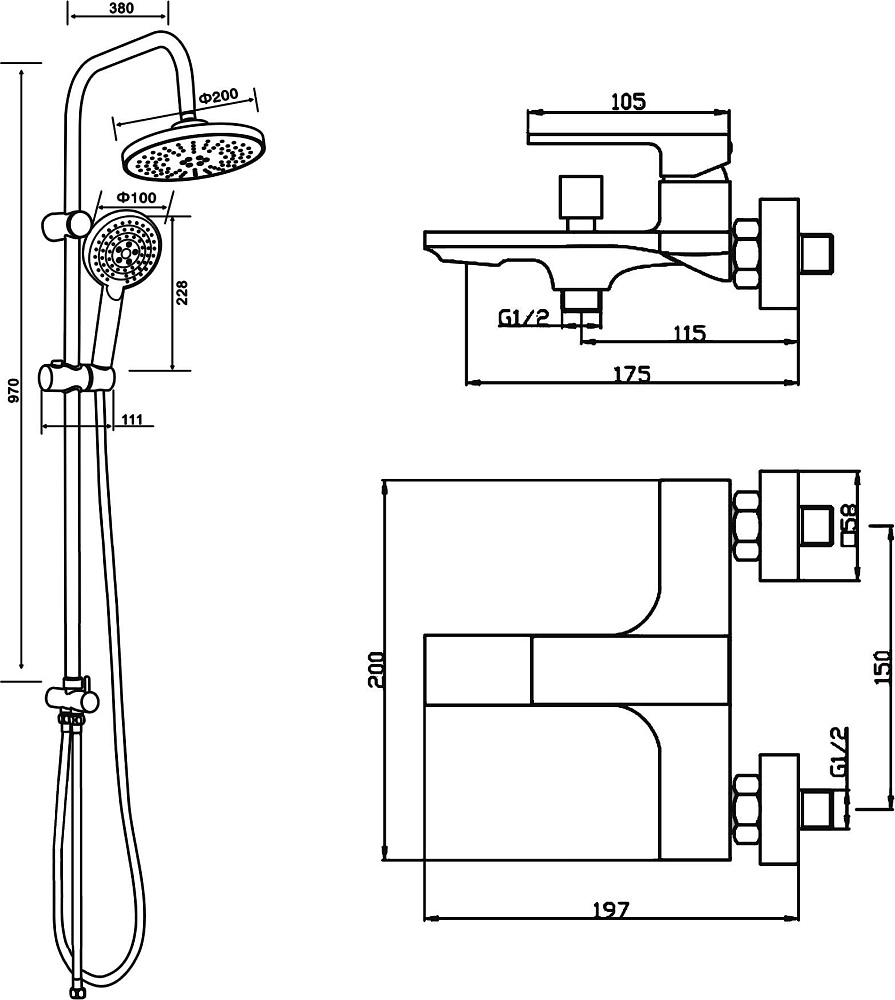 Размер верхнего душа