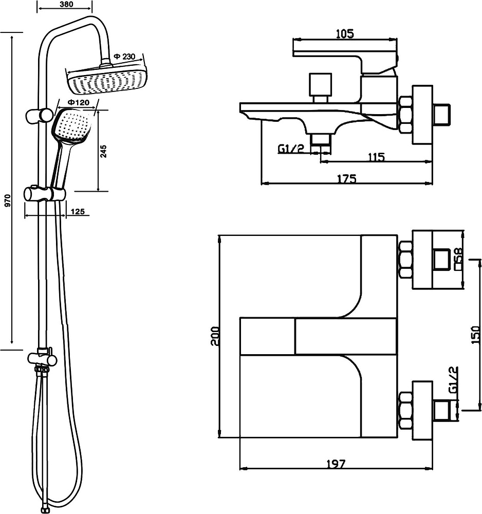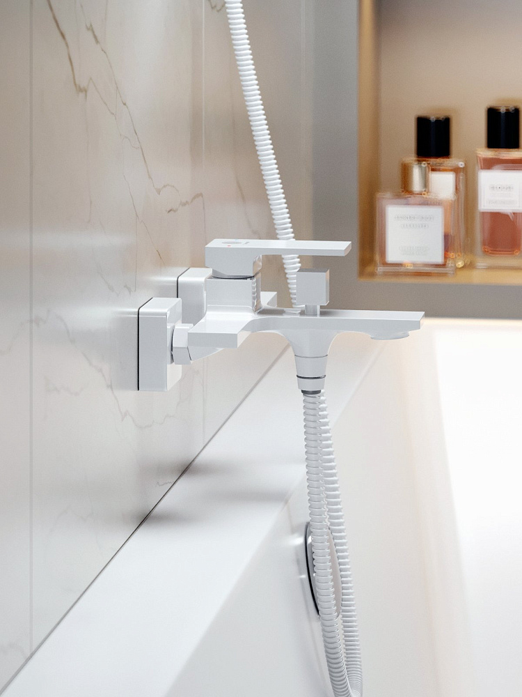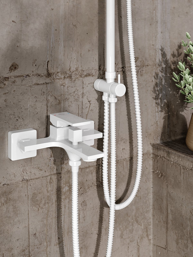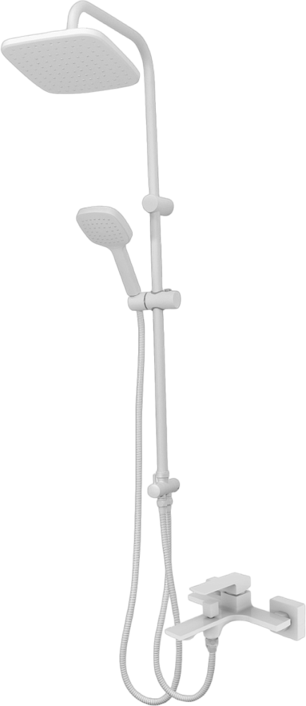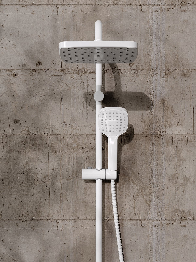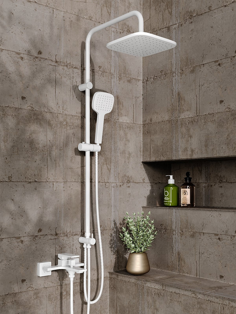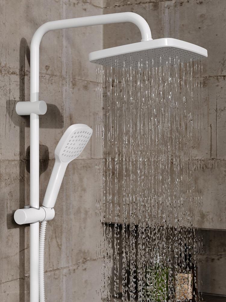 Душевая система Orange Lutz: однорычажный смеситель для ванны и душа идеально подойдет для обустройства современного интерьера в стиле модерн, покрытие цвета глянцевый белый, аэратор предотвращает разбрызгивание воды, делая струю мягкой; верхний душ 230х230 мм с регулировкой угла наклона, ручной душ 120 мм - 1 режим струи, регулируемый по высоте и наклону держатель ручного душа, форсунки верхнего и ручного душа с функцией легкой очистки от известкового налета, душевой шланг 1,5 м в металлической оплетке с защитой от перекручивания, штанга с возможностью установки в старые отверстия, керамический дивертор.