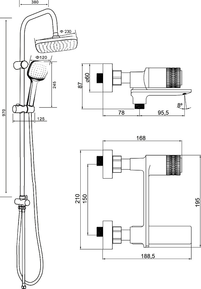держатель для душа / душевая лейка / душевой шланг / переключатель потоков