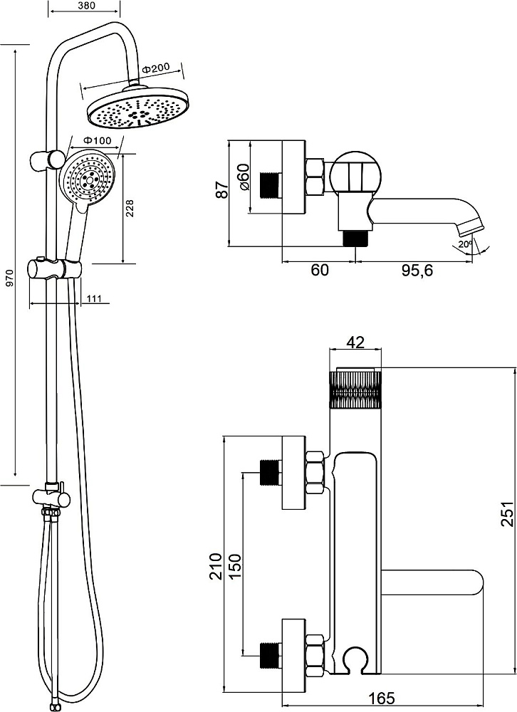 держатель для душа / душевая лейка / душевой шланг / переключатель потоков