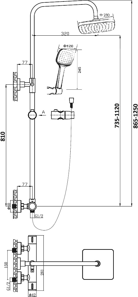 держатель для душа / душевая лейка / душевой шланг / переключатель потоков