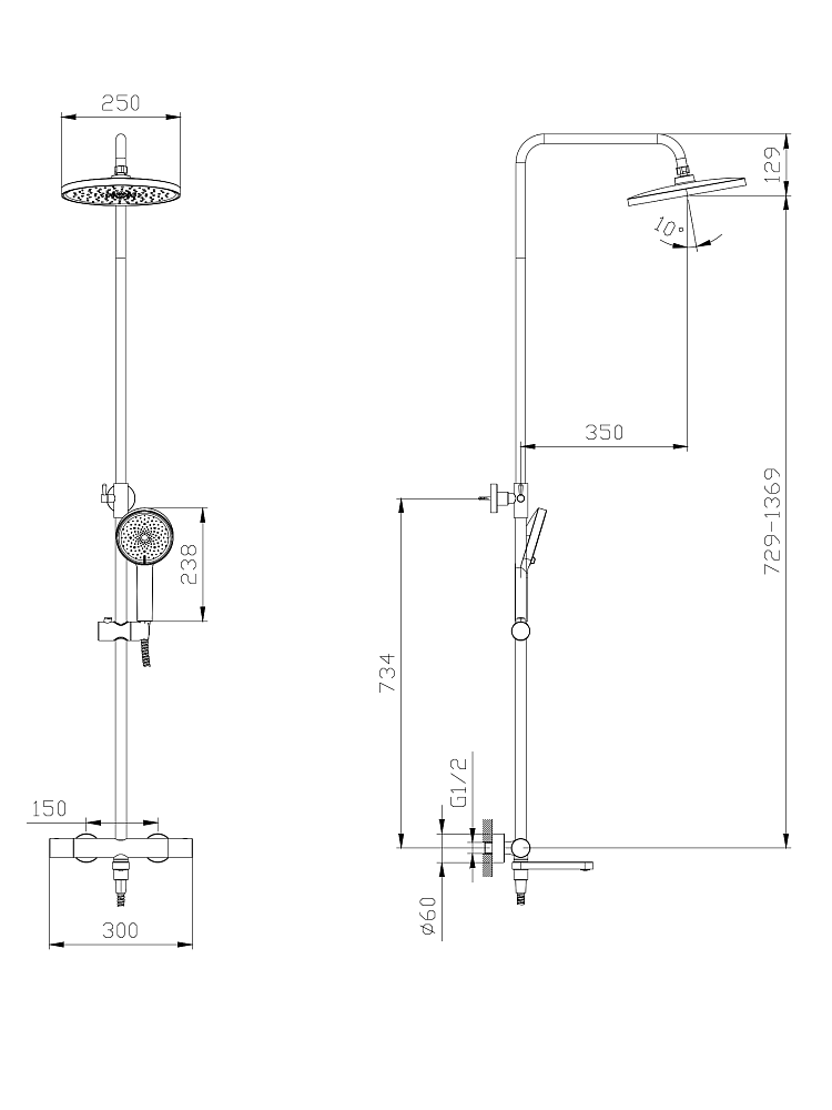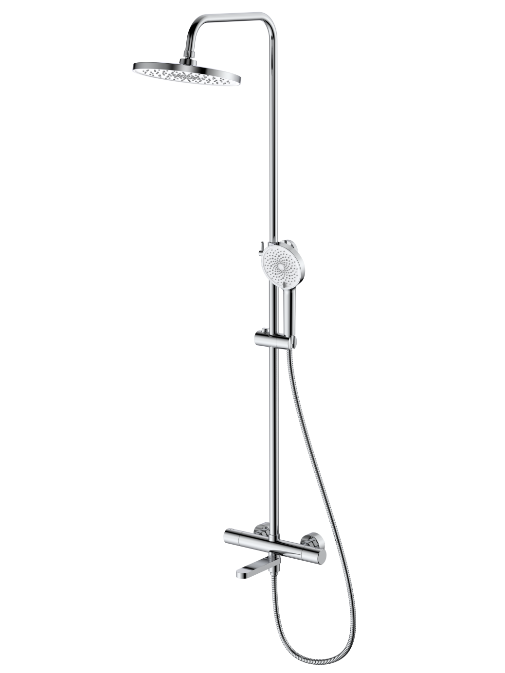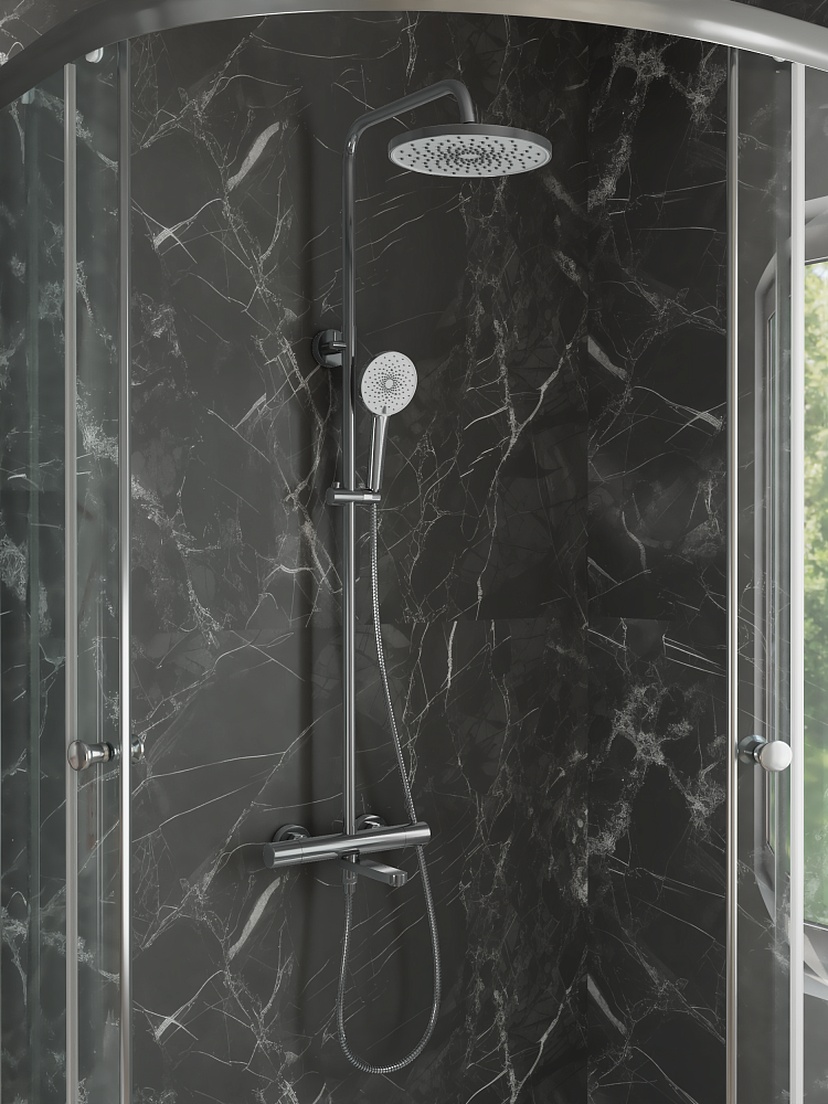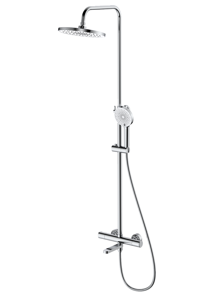 В комплекте 2-x режимная душевая лейка, 1-режимный тропический душ, изготовленный из современной прочной пластмассы, душевая штанга, держатель душевой лейки, душевой шланг с латунными гайками 150 см, смеситель, паспорт изделия. Термостатические картриджи для смесителей обладают рядом преимуществ, среди которых главное - обеспечение постоянной температуры воды и безопасность при использовании, особенно в семьях с детьми или пожилыми людьми. Термостатический картридж поддерживает заданную температуру воды, при перепадах давления или температуры в водопроводной системе. Благодаря встроенным механизмам защиты, термостатические смесители предотвращают возможность ошпаривания горячей водой. Пользователь один раз настраивает желаемую температуру воды, и она остается неизменной, что избавляет от необходимости постоянной регулировки. Поскольку температура воды не требует постоянной корректировки, снижается расход воды. Регулируемая высота стойки (до 1369 мм) позволит установить комфортную высоту для каждого члена семьи. Современные термостатические душевые системы Rush имеют стильный дизайн и станут украшением ванной комнаты.