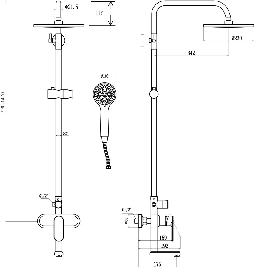 держатель для душа / душевая лейка / душевой шланг / переключатель потоков