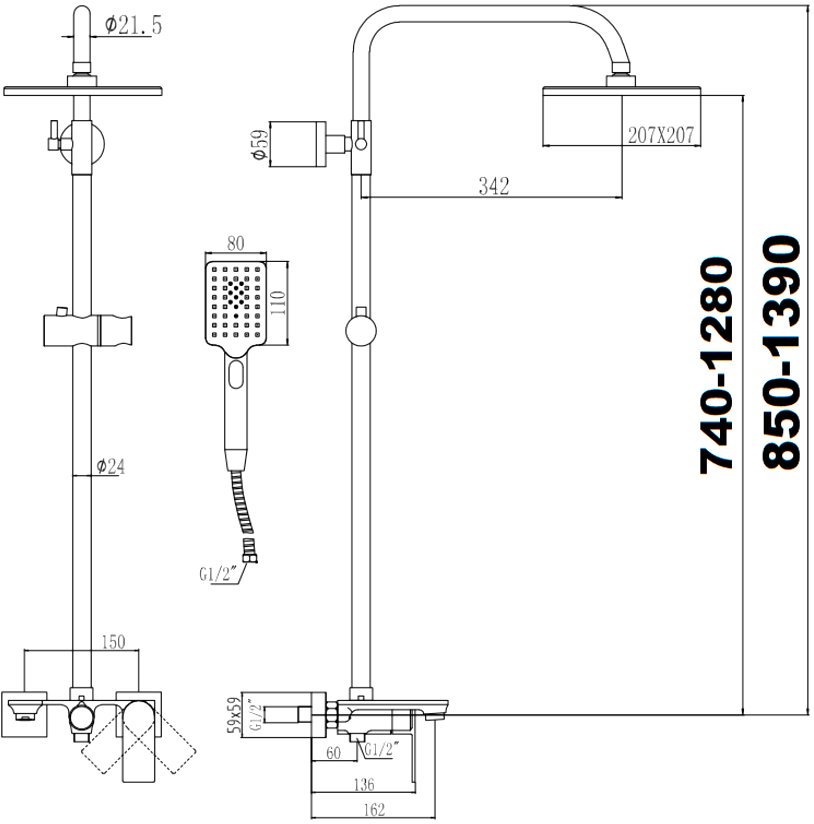 держатель для душа / душевая лейка / душевой шланг / переключатель потоков