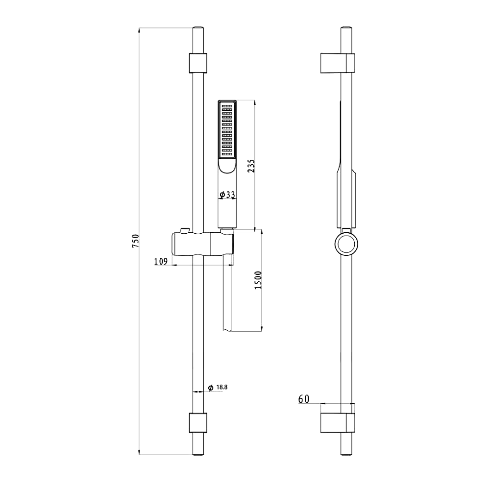 Душевая лейка с размерами 235 мм в длину и 33 мм в ширину. Эргономичная форма лейки приятно ложится в руку, обеспечивая удобство использования.